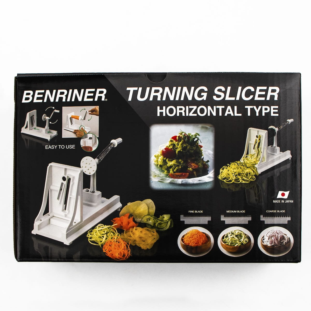 Opis: Pozioma krajalnica spiralna do warzyw marki Benriner to narzędzie, które rewolucjonizuje przygotowywanie surówek i sałatek, znane również jako spiralizer lub Turning Slicer. Pozwala na krojenie warzyw i owoców w spiralne paseczki i nitki. W zestawie znajdują się cztery ostrza: jedno proste i trzy ząbkowane (1 mm, 2,5 mm, 4 mm).