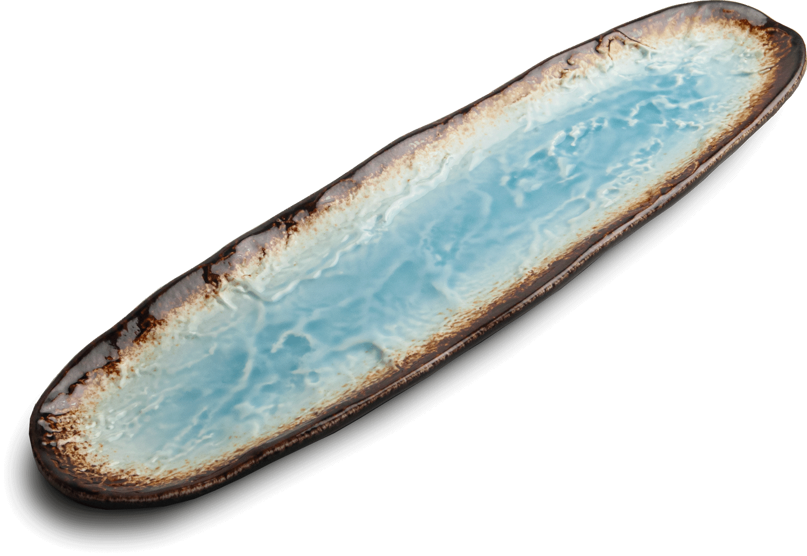 Ceramiczny Talerz Do Serwowania Sushi Yaketa Brązowo Błękitny Zaokrąglony 41cm x 11,5cm EMRO AZIATICA