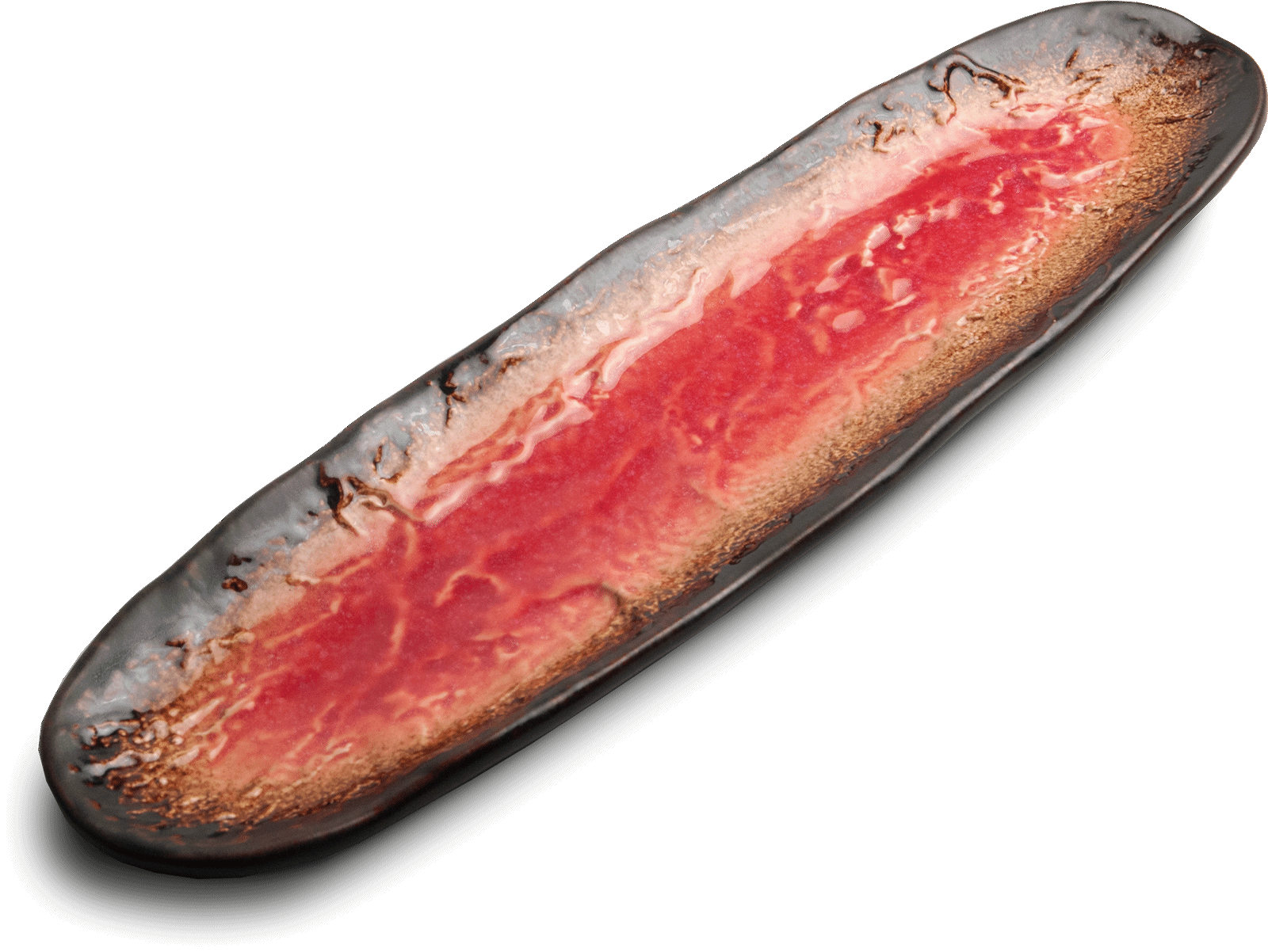 Ceramiczny Talerz Do Serwowania Sushi Yaketa Brązowo Czerwony Zaokrąglony 41cm x 11,5cm EMRO AZIATICA