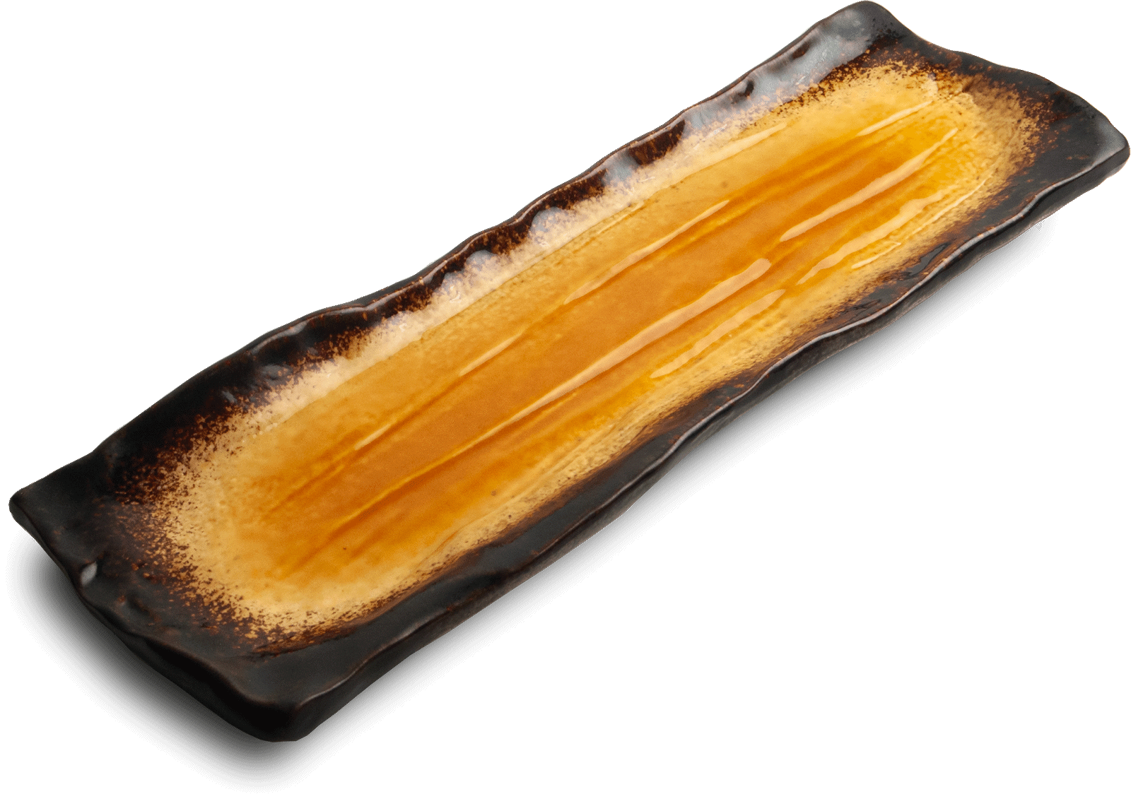 Opis: Prostokątny talerz ceramiczny stworzony do estetycznego podawania sushi, sashimi oraz drobnych przystawek. Połączenie głębokiego brązu z subtelnym pomarańczowym akcentem nadaje mu nowoczesny i elegancki charakter, podkreślając atrakcyjną prezentację potraw.