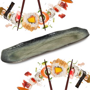 Opis: Ceramiczny talerz do serwowania sushi w różnych odcieniach zielonego koloru o wymiarze 34cm x 10cm firmy EMRO AZIATICA. Bardzo elegancki ceramiczny talerzyk do podawania sushi, zdecydowanie urozmaici i nada klimatu podczas spożywania tej przepysznej potrawy!
