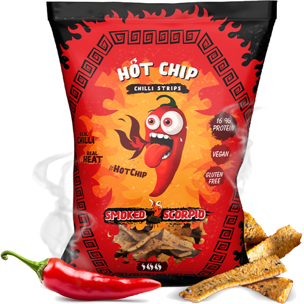 Chipsy proteinowe z drugą najostrzejszą papryką świata to propozycja dla każdego, kto szuka pikantnej przekąski. Wędzona papryka chili Trinidad Moruga Scorpion zapewnia niesamowity pikantny smak. Świetna i odżywcza kompozycja zawierająca wszystko, czego potrzebuje Twój organizm.