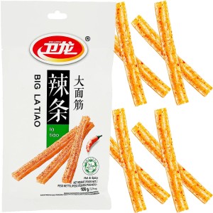 Opis: Big La Tiao HOT & SPICY to kultowa chińska przekąska, znana z wyrazistego smaku i charakterystycznej ostrości, uwielbiana przez fanów orientalnego street foodu. Produkt marki WEI-LONG powstaje na bazie składników roślinnych, pszenicy oraz aromatycznej mieszanki przypraw, które nadają mu intensywny, pikantno-słodkawy profil smakowy.