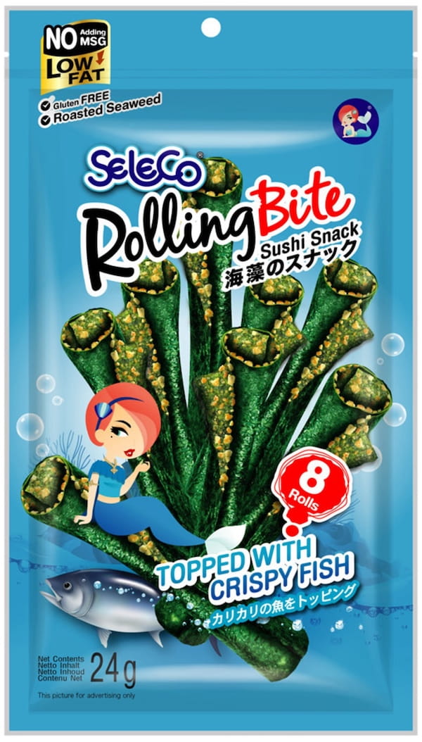 Opis: Chrupiące glony wodorosty nori rybne przekąska roll w opakowaniu 24g firmy SELECO. Chrupiące orientalne wodorosty w formie zawiniętych rureczek o rybnym smaku. Oryginalny smak charakterystyczny dla azjatyckich przekąsek, bardzo rzadko spotykanych w tradycyjnych sklepach.