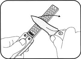 Prawidłowe prowadzenie noża na ostrzałce (ostrzem do przodu - jak do cięcia):