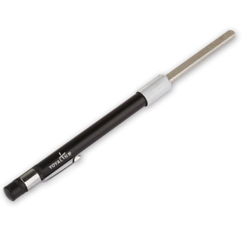 Opis: Mała (wielkości długopisu), poręczna ostrzałka kieszonkowa, pozwalająca na naostrzenie każdego rodzaju noża.