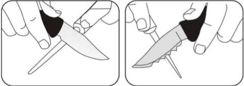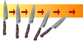 Prawidłowe prowadzenie noża na ostrzałce (ostrzem do przodu - jak do cięcia):
