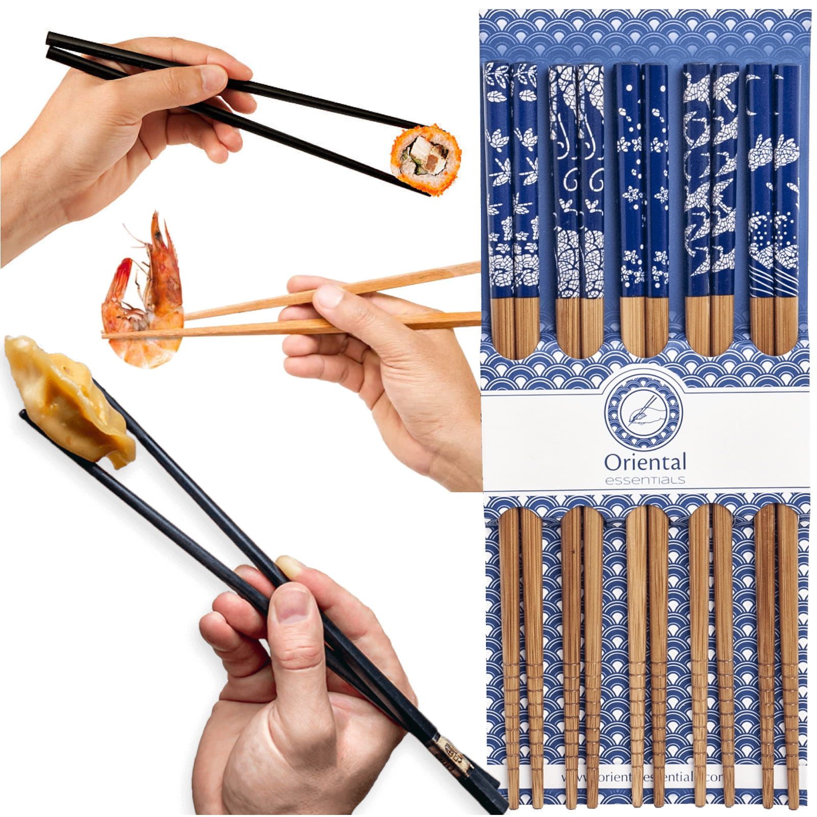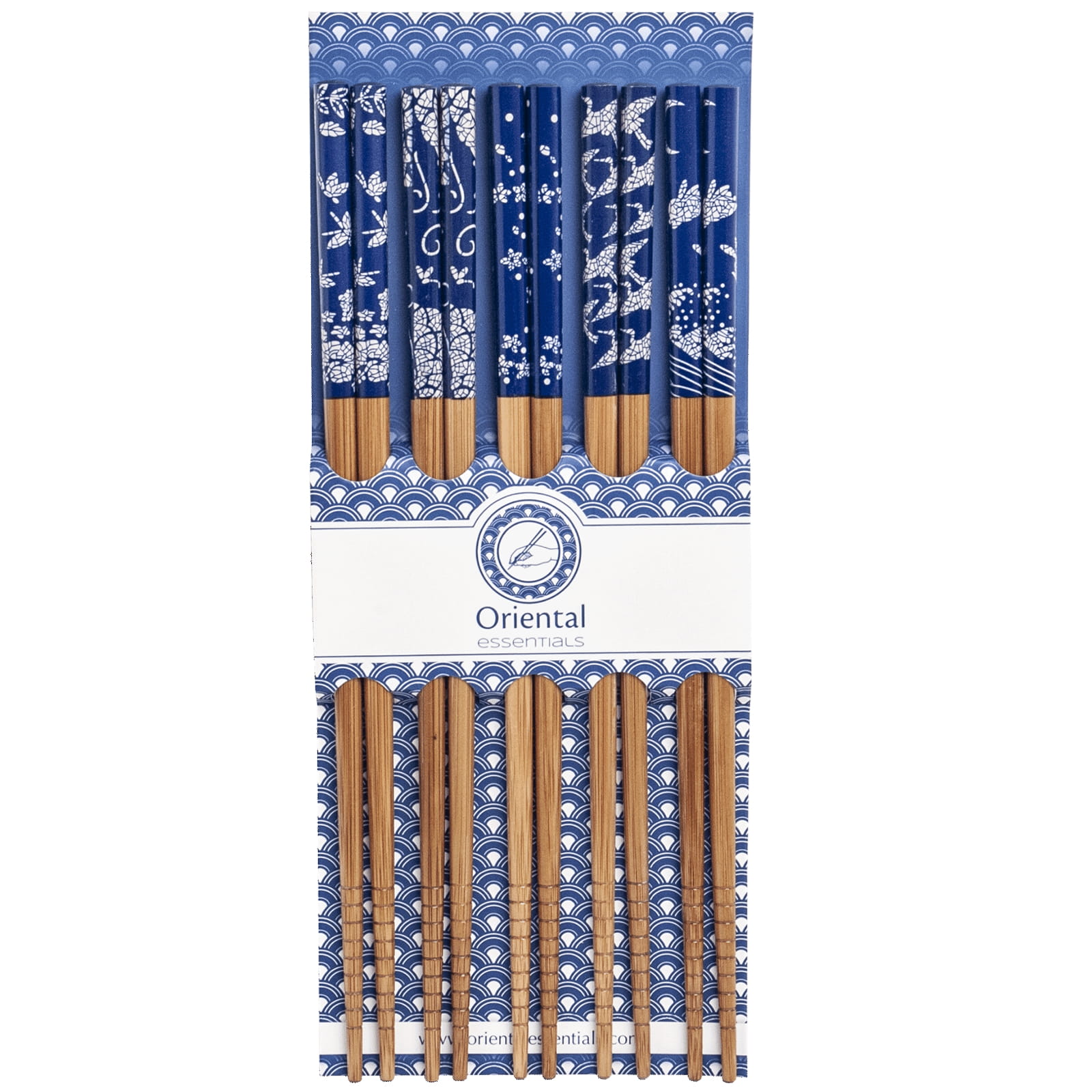 Drewniane Brązowe Pałeczki Różne Niebieskie Kwiaty i Zwierzęta 5 Par 22,5cm ORIENTAL ESSENTIALS