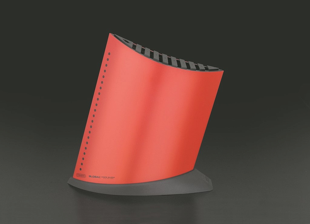 Opis: Średniej wielkości blok z dziesięcioma otworami na 9 noży o różnej szerokości (nie dłuższych niż 24 cm) oraz specjalnym otworem na parę nożyczek kuchennych lub pręt ostrzący. Urzekający projekt autorstwa Komina Yamady przypomina kształt żaglowca pod pełnymi żaglami. Czerwony kadłub ozdobiono czarnymi kropkami i wyposażono w czarną, przeciwpoślizgową podstawę, którą można zdjąć. Dzięki takiemu rozwiązaniu znika problem czyszczenia otworów, co ułatwia przestrzeganie najwyższych standardów higieny. Ten piękny, funkcjonalny blok pozwoli bezpiecznie przechowywać cenne noże i utrzymywać je w nieskazitelnym stanie.