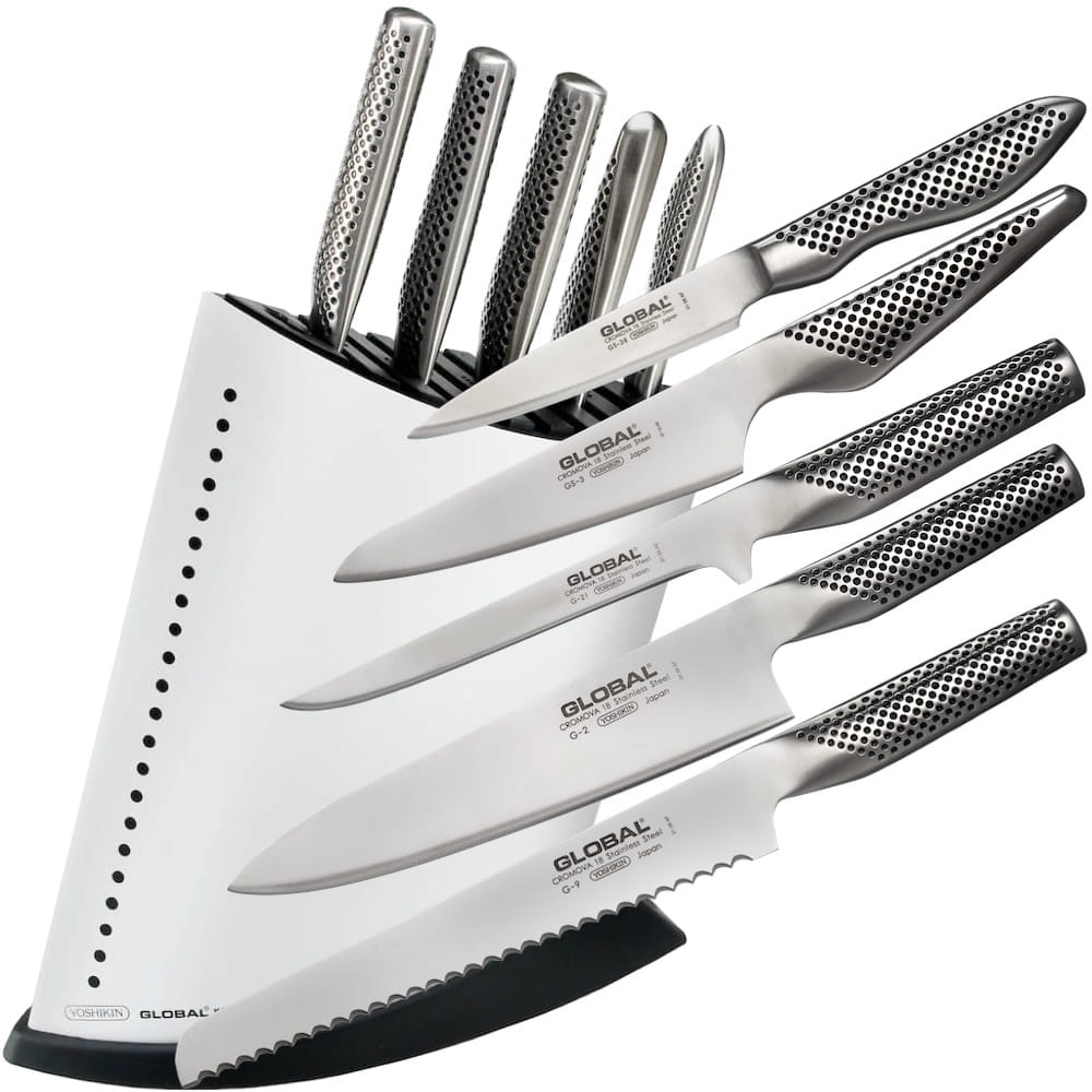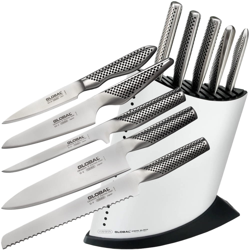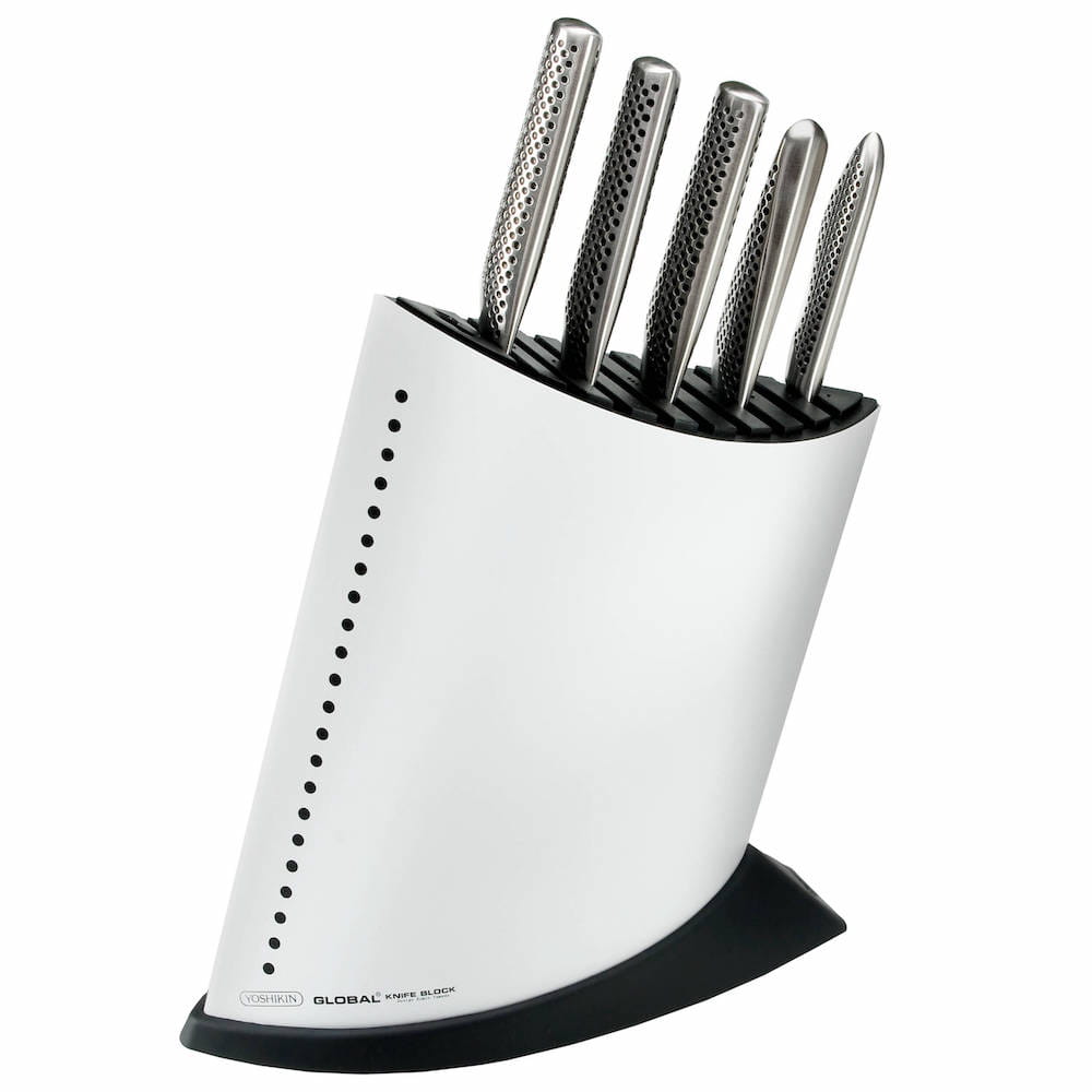 Global Japoński Komplet 5 Noży w Białym Bloku GKB52CW-SET5