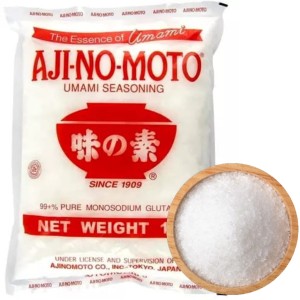 Opis: Glutaminian sodu renomowanej firmy Ajinomoto w opakowaniu 1kg. Od dziesiątek lat glutaminian sodu był używany w kuchni azjatyckiej jako swoisty dodatek do wielu dań, w celu polepszenia ich smaku. Początkowo uczony prof. Kikunae Ikeda wyizolował ten składnik, z bardzo znanych wodorostów kombu.