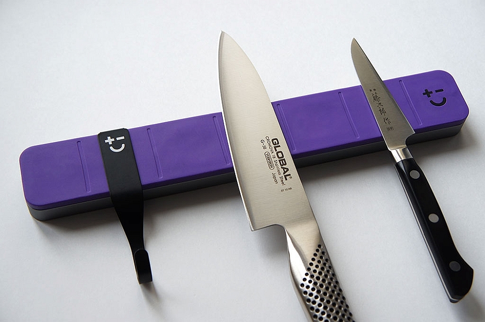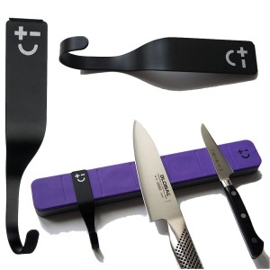 Opis: Haczyk z solidnego metalu, mocowany do listwy magnetycznej na noże. Pozwala zawiesić np. rękawicę, szpatułkę, nożyce kuchenne, ręcznik, klucze czy kubek. Doskonały dodatek, który zwiększa praktyczność magnetycznej listwy na noże Bisbell.