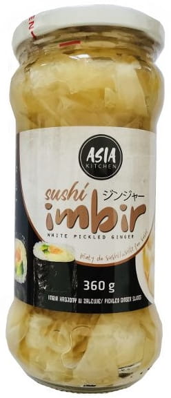 Opis: Marynowany imbir firmy Asia Kitchen w słoiku o pojemności 360g. Bardzo często używany w kuchni japońskiej. Stosowany podczas jedzenia sushi, aby przeczyścić kubki smakowe. Imbir dzięki specyficznemu smakowi, oraz intensywnemu aromatowi stał się jednym z najczęściej stosowanych warzyw w kuchni chińskiej. Imbir marynowany natomiast został wykorzystywany w kraju Kwitnącej Wiśni, ponieważ miał właściwości czyszczące, a jedzone tam krążki sushi miały przeróżne smaki.