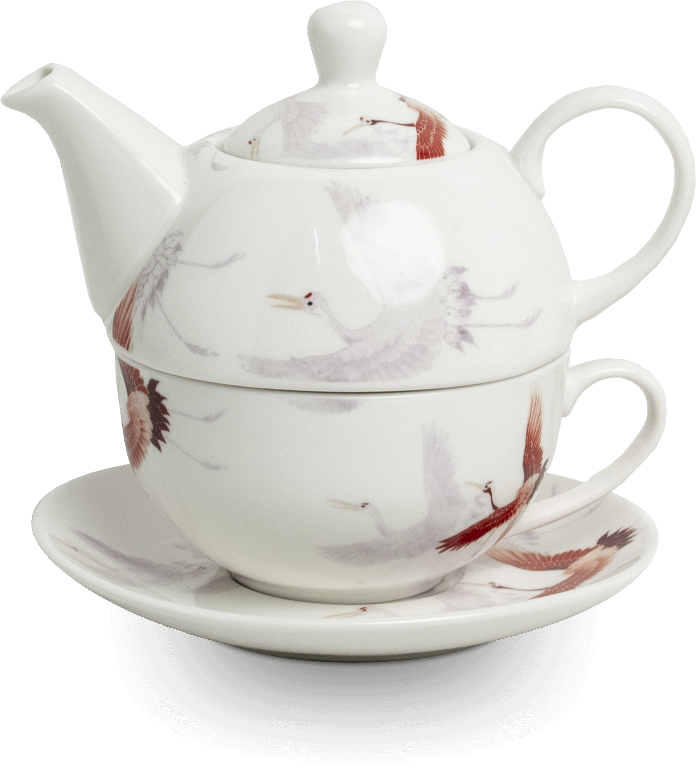 Elegancki komplet inspirowany kulturą Japonii, idealny do codziennego parzenia i serwowania ulubionej herbaty. Składa się z filiżanki, dzbanuszka, pokrywki i podstawki, tworzących praktyczny zestaw typu Tea for One. Delikatny motyw żurawia symbolizuje szczęście i długowieczność, dodając całości wyjątkowego charakteru.