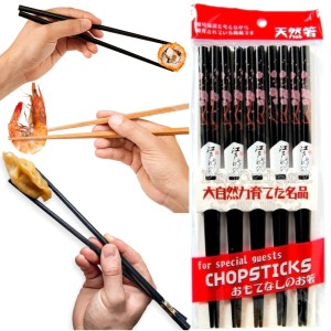 Japońskie Czarne Pałeczki Motyw Kwiaty 5 Par ASIA EXPRESS FOOD