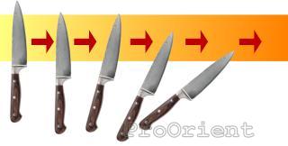 Prawidłowe prowadzenie noża na ostrzałce (ostrzem do przodu - jak do cięcia):