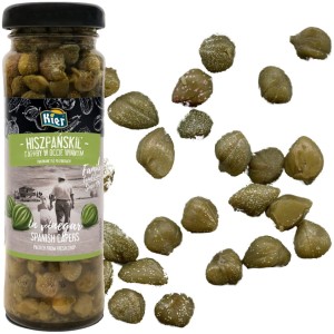Opis: Hiszpańskie kapary w occie winnym w słoiczku o zawartości 110ml wyprodukowane przez firmę Kier. Producent kontroluje zbiory warzyw z których produkuje swoje produkty, oferując najwyższą jakość.