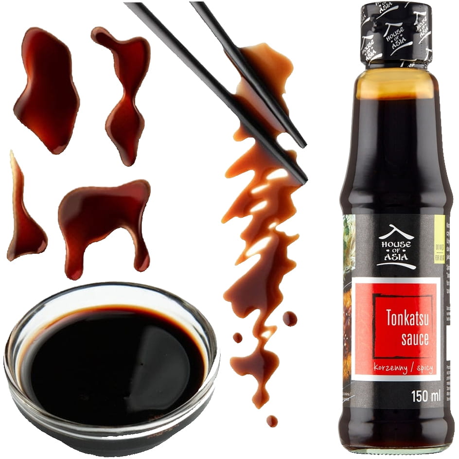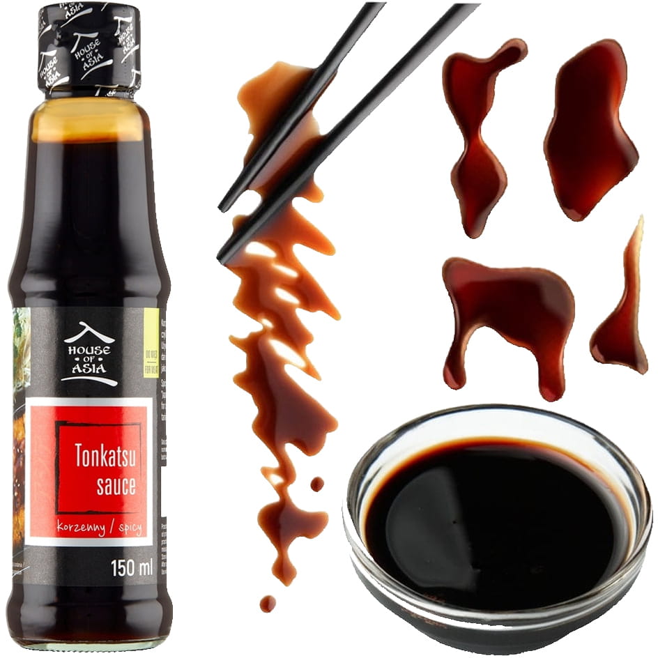 Opis: Korzenno pikantny sos sojowy o nazwie Tonkatsu Vegan w butelce o pojemności 150ml firmy House of Asia. Stanowi nieodłączny dodatek dania Tonkatsu. Te smażone w głębokim tłuszczu kotlety wieprzowe w panierce panko, smakiem i wyglądem przypominają polskie kotlety schabowe. Sos Tonkatsu i jego słodkawy, korzenny smak, doda im wyjątkowego aromatu.