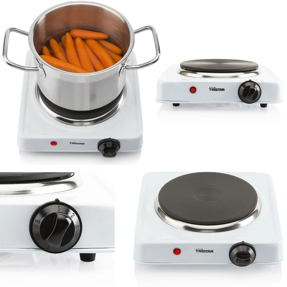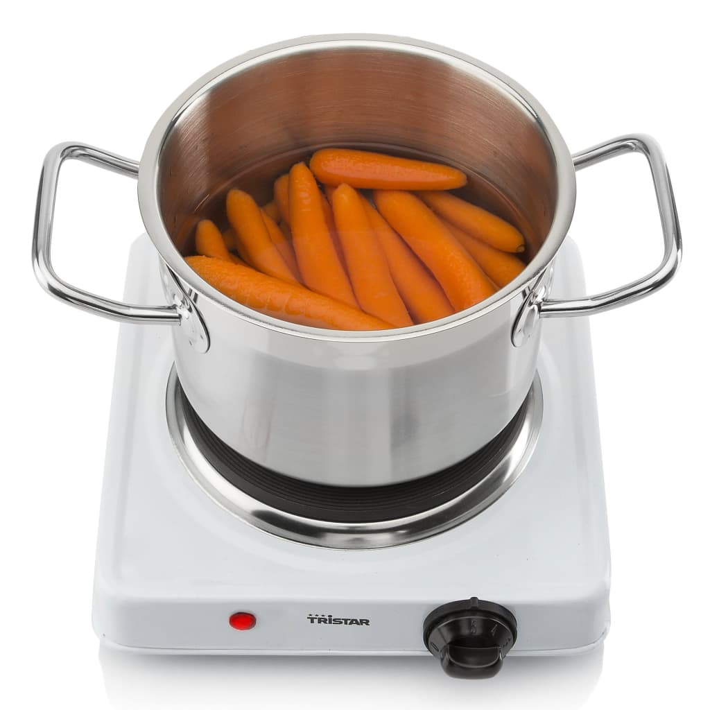 Opis: Kuchenka elektryczna o mocy 1000 Wat o średnicy pola grzewczego 15cm firmy TRISTAR. Kompaktowa, a zarazem mocna kuchenka KP-6185 marki Tristar jest idealna, aby zabrać ją ze sobą. Użyj jej w kuchni, pokoju w akademiku, biurze, a nawet schronisku, aby usmażyć swój połów dnia po wędkowaniu. Kuchenka o mocy 1000 W jest idealna do małych garnków i patelni. Temperaturę można łatwo ustawić na jednym z 5 ustawień za pomocą regulowanego termostatu. Ta przenośna płyta grzewcza jest stabilna i bezpieczna dzięki antypoślizgowym nóżkom. Nienagrzewająca obudowa sprawia, że kuchenka pozostaje chłodna w dotyku. To łatwe w obsłudze urządzenie jest odpowiednia również dla osób starszych.