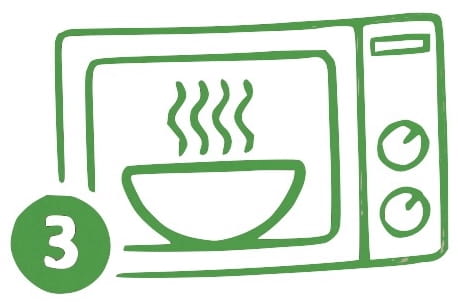 | 3. Lub dolej zimnej wody i podgrzej w mikrofalówce przez 2 minuty. |