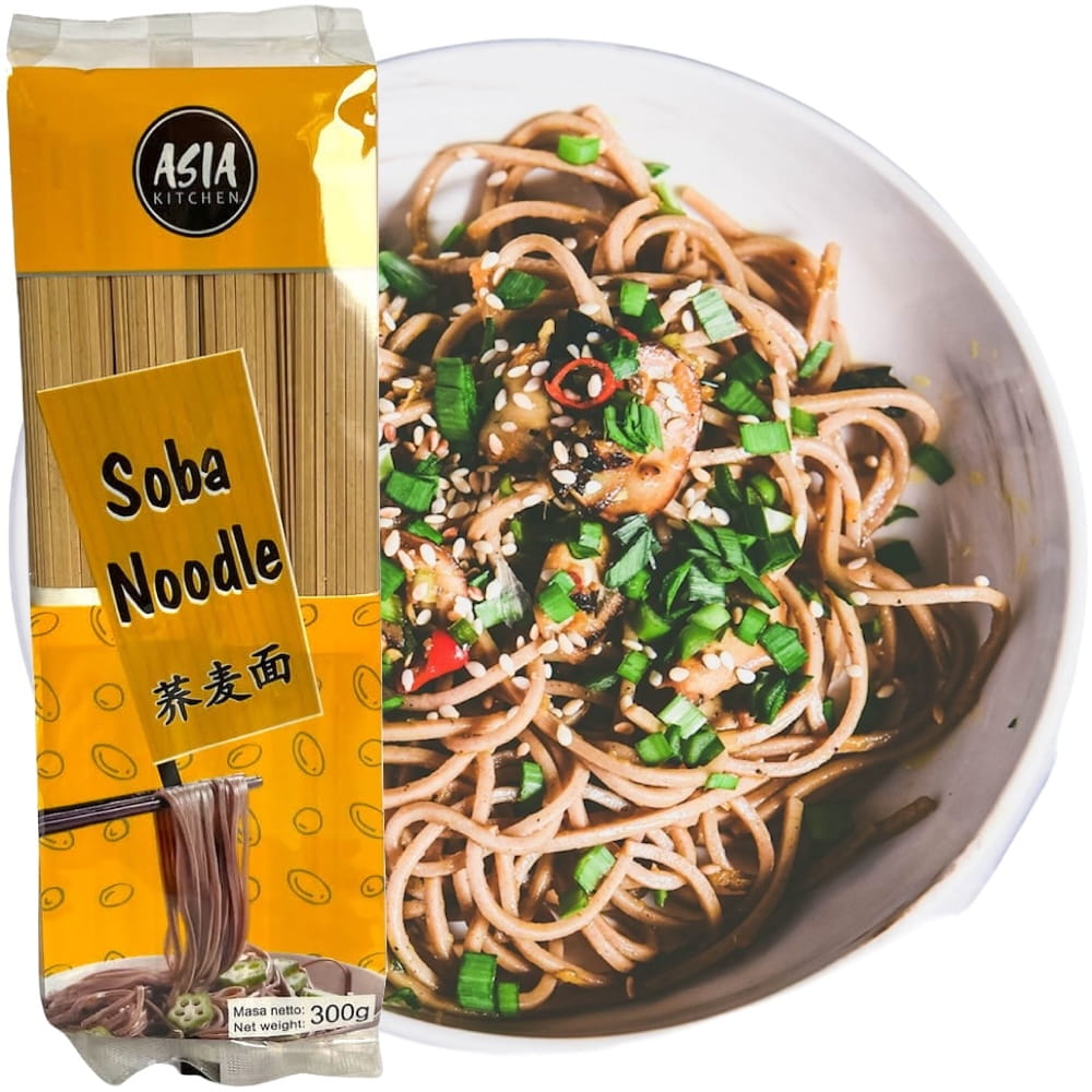 Opis: Makaron gryczany soba to makaron wyrabiany ze specjalnej mąki gryczanej. Częsty dodatek do zup oraz potraw kuchni japońskiej. Makaron wystarczy wrzucić do wrzątku na 3 minuty, przecedzić i jest gotowy do podania zarówno na zimno jak i gorąco.