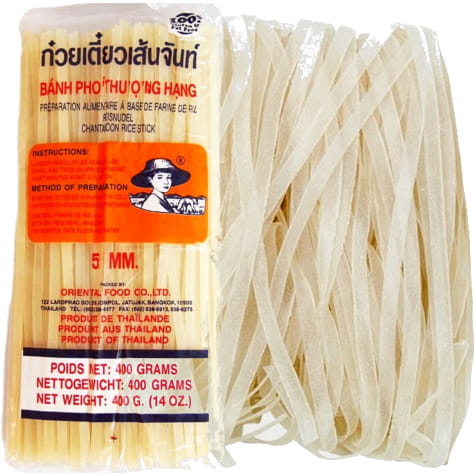 Opis: Makaron ryżowy 5mm firmy Farmer Brand w opakowaniu 400g. Używany do wielu potraw w kuchni azjatyckiej min. do tajskiej potrawy pad thai - czyli smażonego makaronu, do wietnamskich sajgonek oraz do sałatek. Bardzo prosty w przygotowaniu, wystarczy moczyć go przez kilka minut w wodzie, a później gotować kolejnych kilka do miękkości.