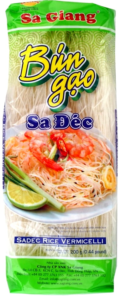Opis: Makaron Ryżowy Nitki Wietnamskiej firmy Sa Giang w opakowaniu 200g. Makaron Ryżowy jest głównie wykorzystywany do zup, nadaje się również do przygotowania innych azjatyckich dań. Makarony Ryżowe są zaraz po ryżu najczęściej spożywanymi dodatkami energetycznymi w krajach azjatyckich. Wystarczy zalać go wrzątkiem i pozostawić w naczyniu, aż napęcznieje, po czym przecedzić i zlać zimną wodą.