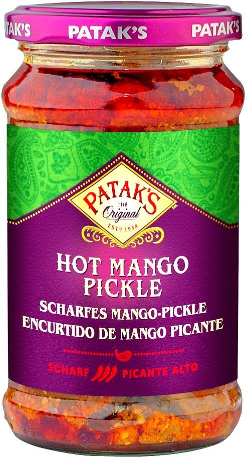Opis: Marynowane bardzo ostre indyjskie mango hot firmy Pataks w słoiku o pojemności 283g. Klasyczna indyjska marynata, celebrująca narodowe owoce Indii, łącząca cudownie owocowe mango z mieszanką tradycyjnych przypraw z dodatkiem chilli. Pyszna mieszanka mango z aromatycznymi przyprawami. Autentyczne indyjskie pikle Patak to kuszące mieszanki egzotycznych owoców i warzyw ze starannie dobranymi przyprawami, które stanowią smaczny dodatek do każdego dania. Pyszne z naan lub pappadum, wspaniałe do kanapek, sałatek lub do wędlin. W ramach urozmaicenia codziennego posiłku dodaj do niego pyszną indyjską przekąskę.