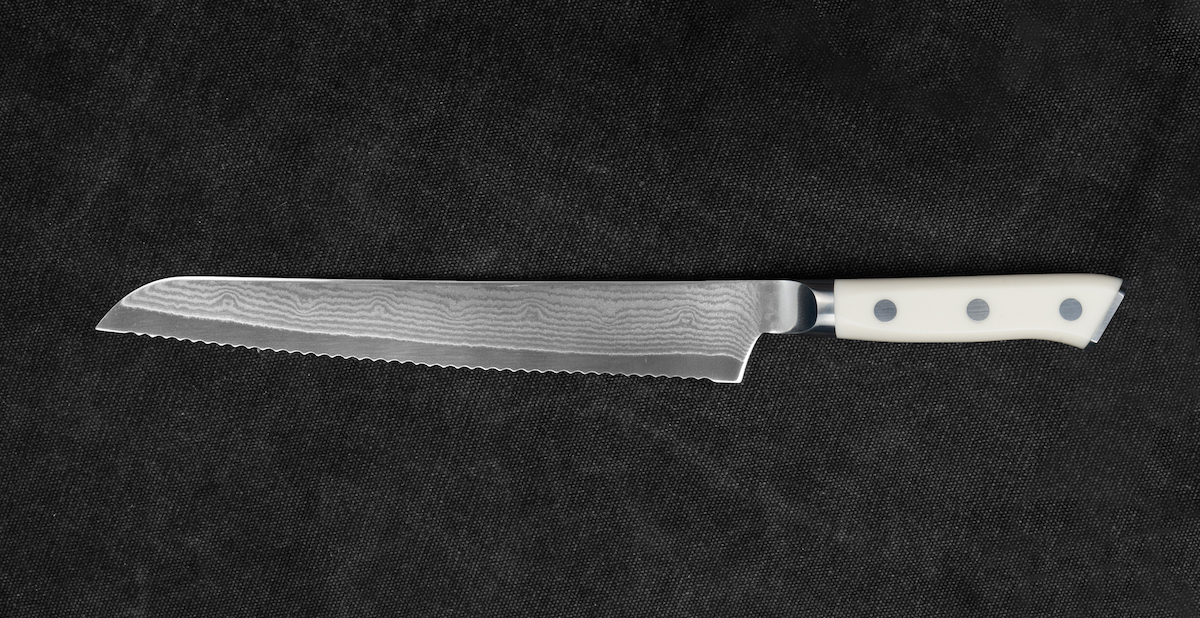 Opis: Wykonany z japońską starannością nóż kuchenny, który świetnie sobie radzi zarówno z twardą skórką świeżego chleba, jak i z miękkim puchem gorącej bułki. Nóż ten posiada długie, ząbkowane ostrze, które pozwala na komfortowe krojenie nawet największych bochenków. Tradycyjna rękojeść w stylu japońskim jest bardzo lekka i świetnie dopasowana do kształtu dłoni.