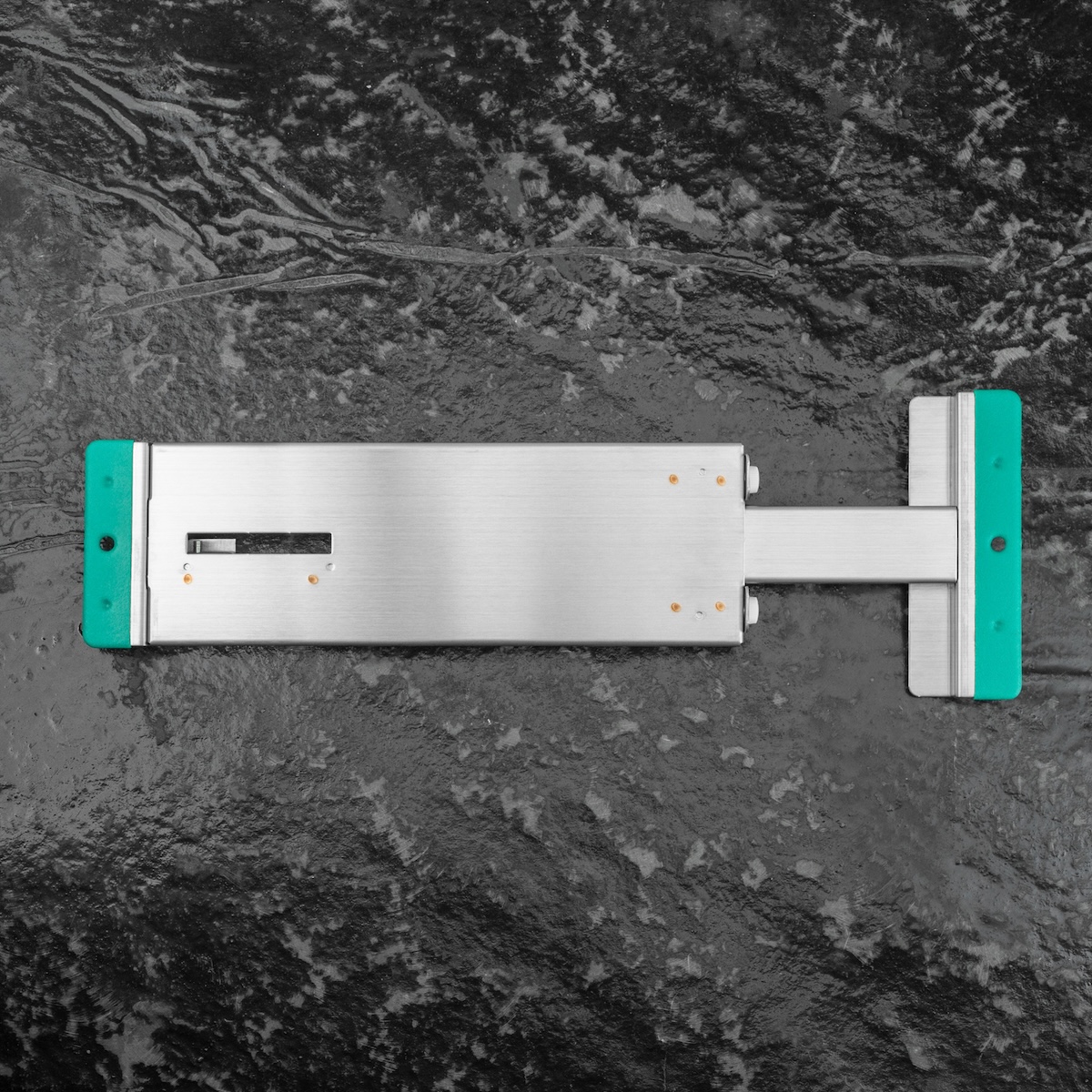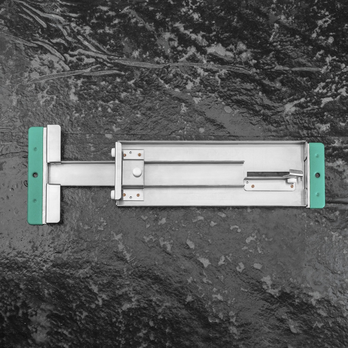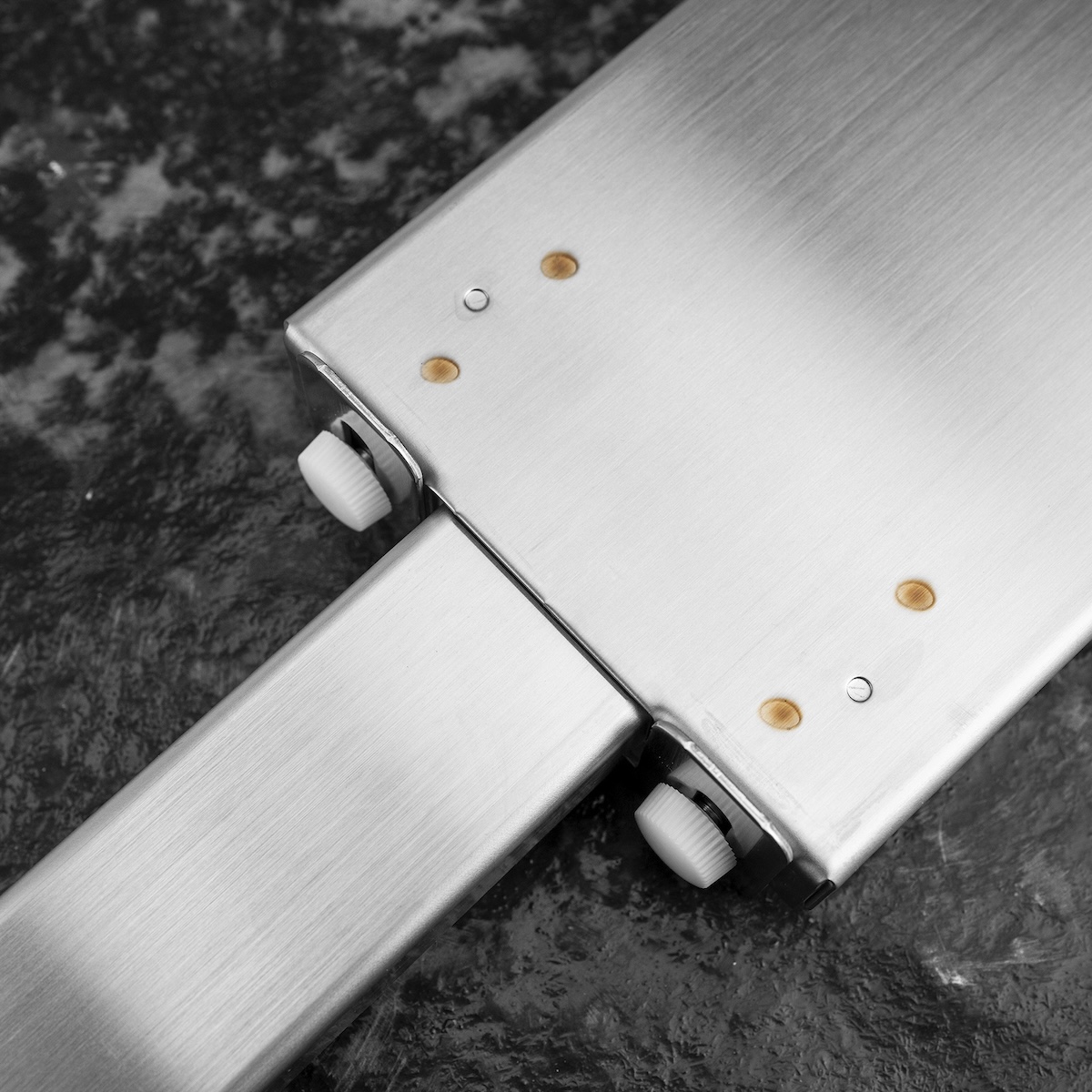Podstawka wykonana jest z odpornego na wodę aluminium, dzięki czemu cechuje ją wysoka trwałość oraz odporność na korozję. Regulowana konstrukcja umożliwia precyzyjne dopasowanie do różnych szerokości zlewów — od 40 do 55 cm — co pozwala na stabilne oparcie i bezpieczną pracę nawet z większymi kamieniami.
