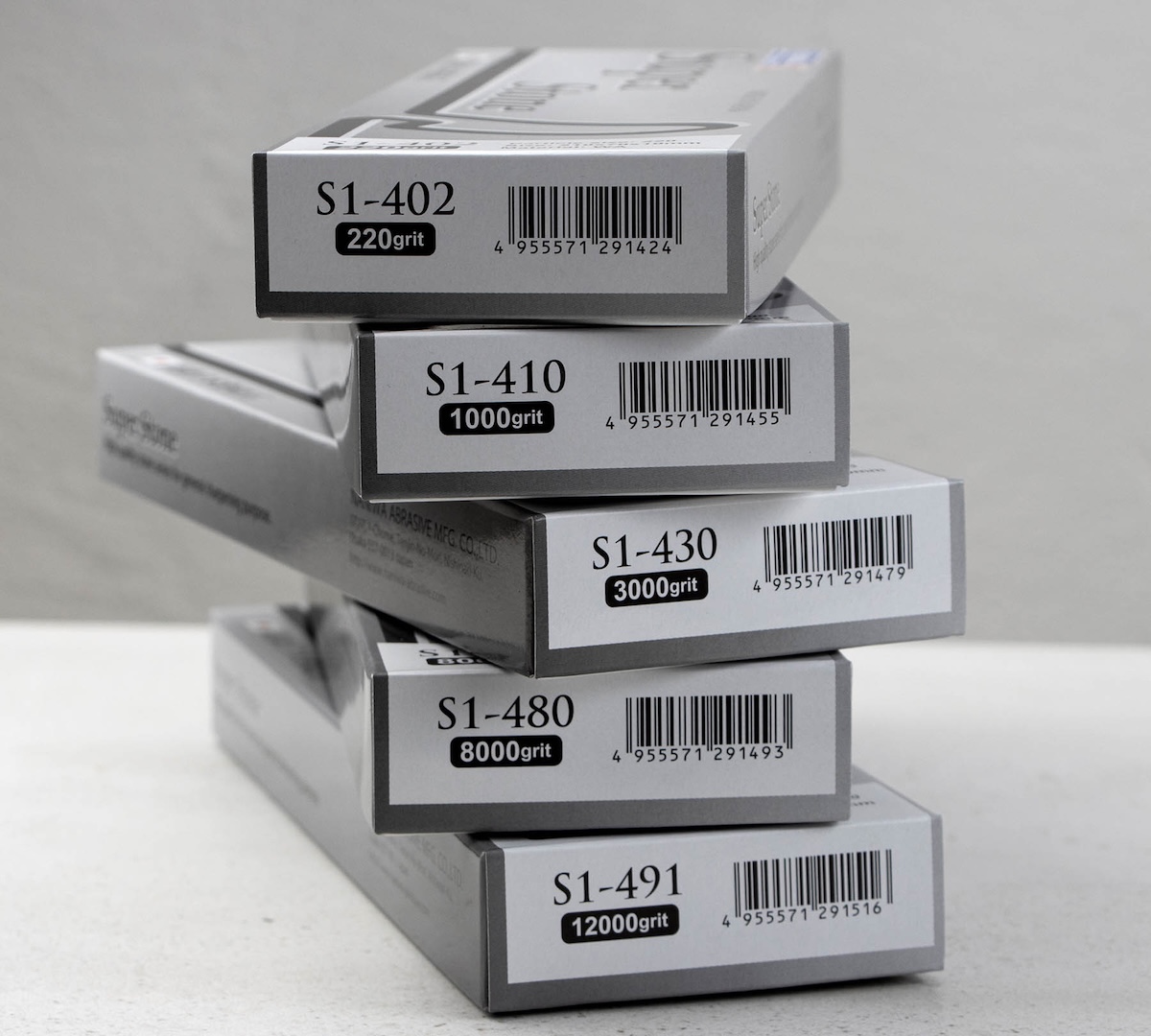 - Gradacja JIS: #8000 – bardzo drobna ziarnistość, do finalnego polerowania krawędzi tnącej