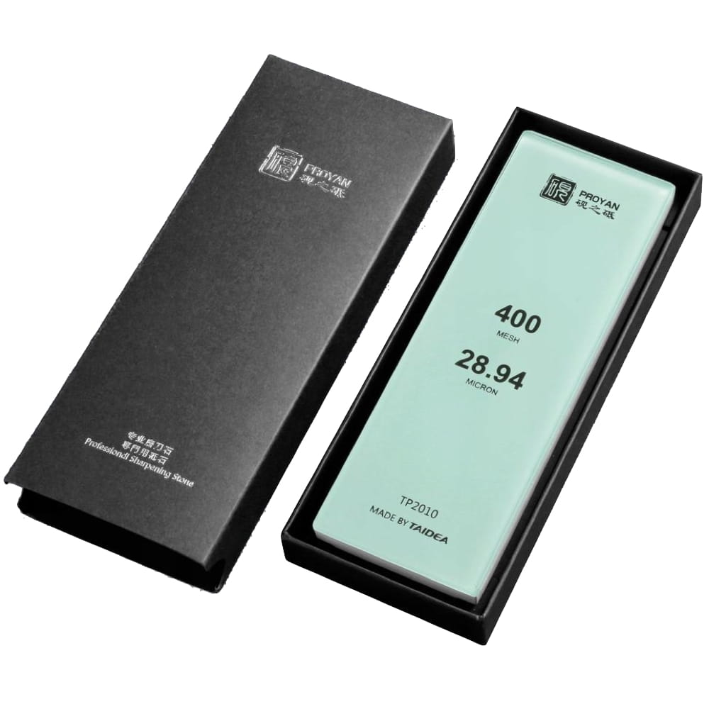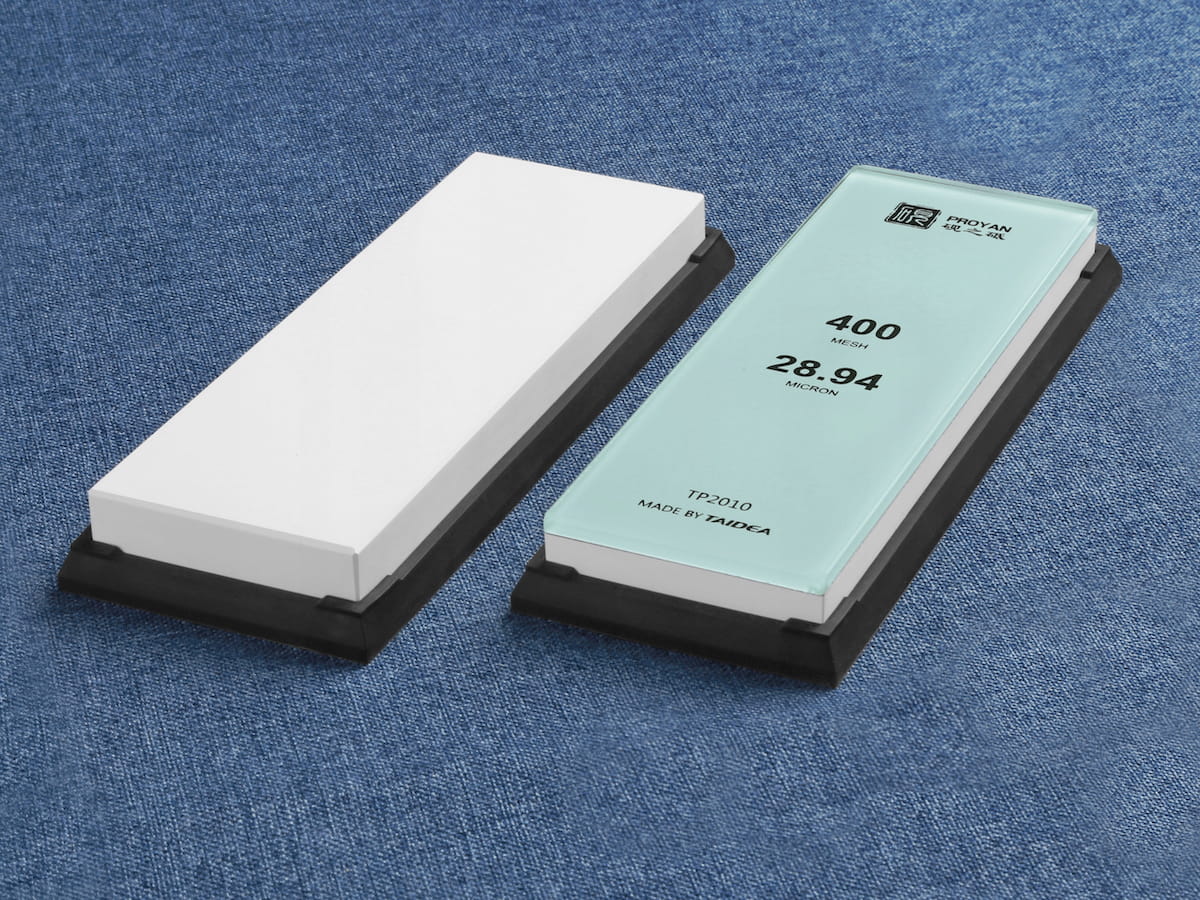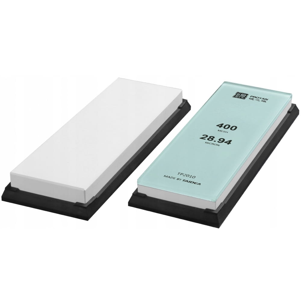 Opis: W kamieniach Taida Glass do podstawy wykonanej z hartowanego szkła przytwierdzono biały korund, który jest jednym z najtwardszych minerałów na świecie. Tego typu ostrzałka ściera się dużo wolniej niż tradycyjne kamienie wodne, nie trzeba jej moczyć w wodzie przed użyciem (wystarczy spryskać ją wodą) i co najważniejsze, można wykorzystać ostrzałkę do końca, bo szkło zapobiega pęknięciu kamienia nawet, gdy materiału ściernego zostanie parę milimetrów.