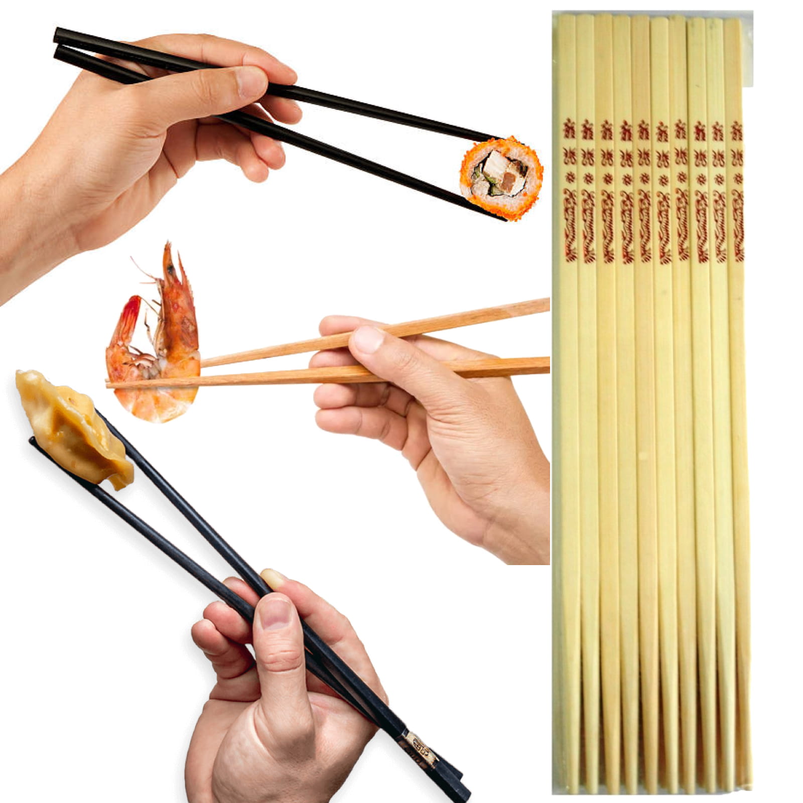 Pałeczka znajdująca się na dole powinna być nieruchoma i stabilna. Górną pałeczką powinniśmy swobodnie poruszać, aby móc chwytać kawałki jedzenia. Poruszamy nią za pomocą palca wskazującego oraz kciuka.