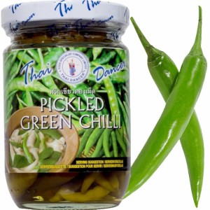 Opis: Marynowane zielone papryczki chilli firmy Thai Dancer w słoiku o pojemności 200g. Zielone papryczki chili to jedne z ostrzejszych papryczek używanych w kuchni azjatyckiej. Stanowią idealny dodatek do ostrych dań, zup, sosów, sałatek czy też pizzy. Zaspokoi każdego wielbiciela bardzo ostrego smaku.
