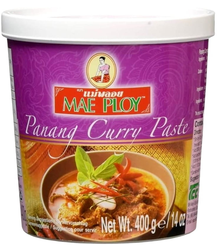 Opis: Pasta panang curry firmy Mae Ploy w puszce o pojemości 400g. Jedna z najbardziej popularnych past, używana w kuchni tajskiej oraz indyjskiej do przygotowania dań typu curry. Posiada bardzo oryginalny i intensywny aromat a duża zawartość papryczek chili sprawia, że jest naprawdę ostra. Pastę najczęściej dodaje się do potraw z kurczakiem, aby podkreślić smak mięsa. Doskonale łączy się również z mlekiem kokosowym, sosem rybnym i brązowym cukrem. Jest tradycyjnym składnikiem wykorzystywanym w kuchni tajskiej.