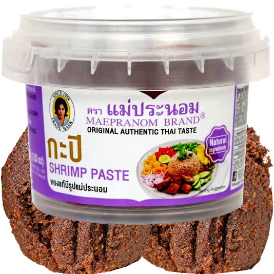Opis: Pasta krewetkowa firmy MaePranom Brand w opakowaniu 100g. Bardzo popularna pasta w kuchni chińskiej, tajskiej oraz indonezyjskiej. Robiona z solonych sfermentowanych krewetek, które są następnie mielone. Podczas gotowania wydziela się nietypowy aromat pasty. Często dodawana do ryb, warzyw oraz dipów. Kolor, smak oraz zapach pasty zależny jest od regionu w którym została wyprodukowana. Pasta pochodząca z Chin oraz Wietnamu jest różowawa, natomiast tajska pasta jest brązowo-zielonkawa. Ta odmiana pasty pochodzi z Tajlandii.