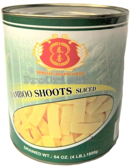Opis: Pędy bambusa w zalewie, pokrojone w plasterki firmy Spring Happiness w ekonomicznej puszce o pojemności 2950g. Są jednym z bardziej popularnych dodatków warzywnych do dań kuchni orientalnej. W bardzo dużym opakowaniu nadają się zarówno do częstego użytku domowego jak i w lokalach z azjatyckimi potrawami.