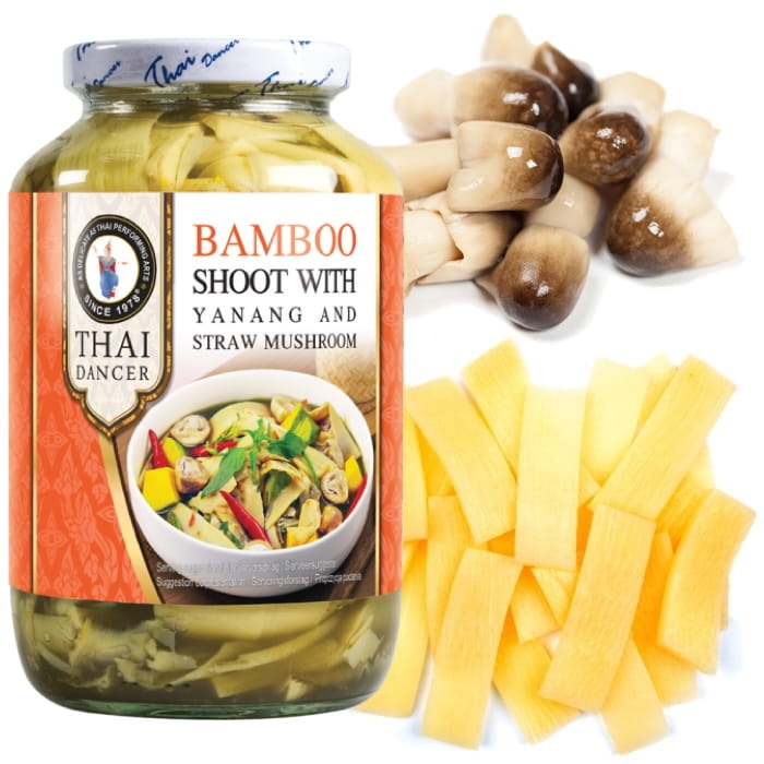 Pędy Bambusa z Grzybami Słomianymi i Yanang 680g THAI DANCER