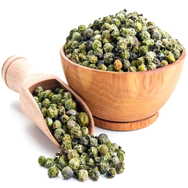 Zielony pieprz jest mniej palący nie pieprz czarny i ma wyszukany, wyrazisty, odświeżający smak. Ziarna pieprzu zielonego to niedojrzałe owoce pieprzu czarnego liofilizowane albo przechowywane w słonej zalewie lub occie.