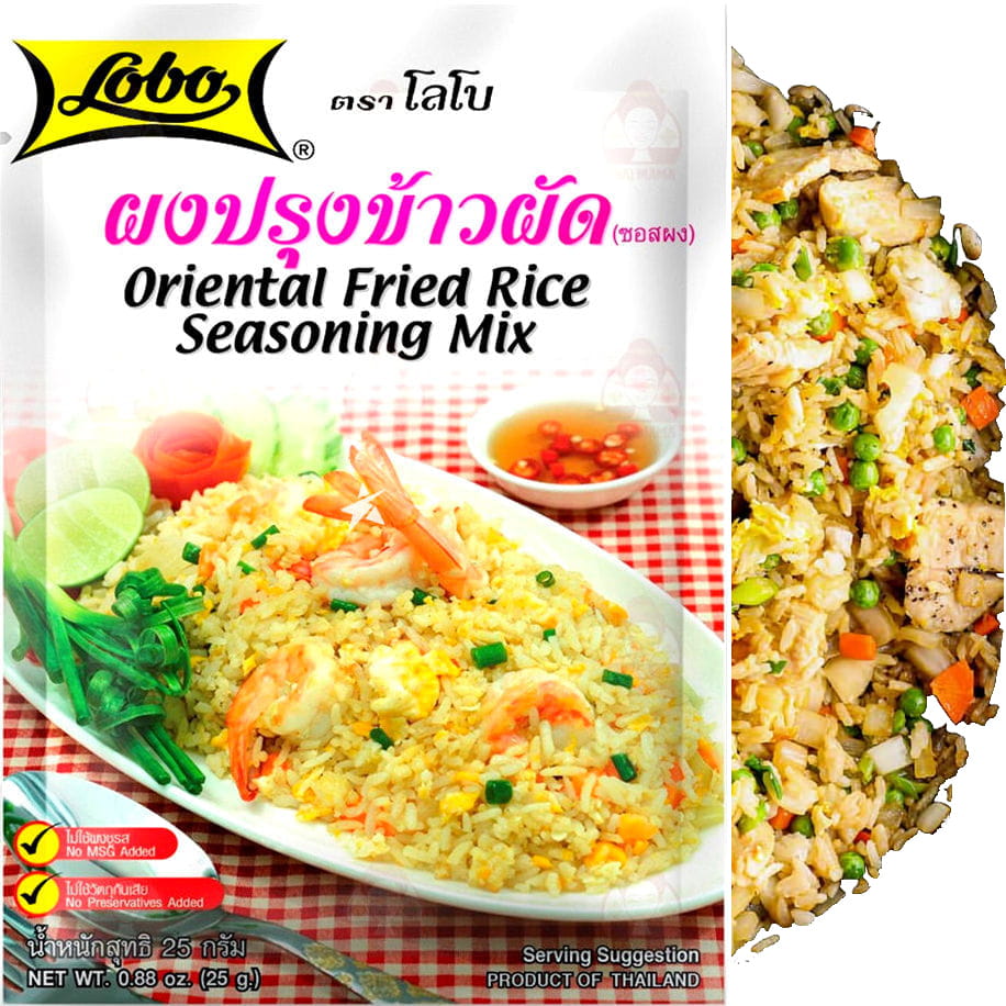 Opis: Przyprawa do orientalnego smażonego ryżu firmy Lobo w opakowaniu 25g. Przyprawa, która sprawia, że ryż, krewetki czy też wieprzowina smakują rewelacyjnie.