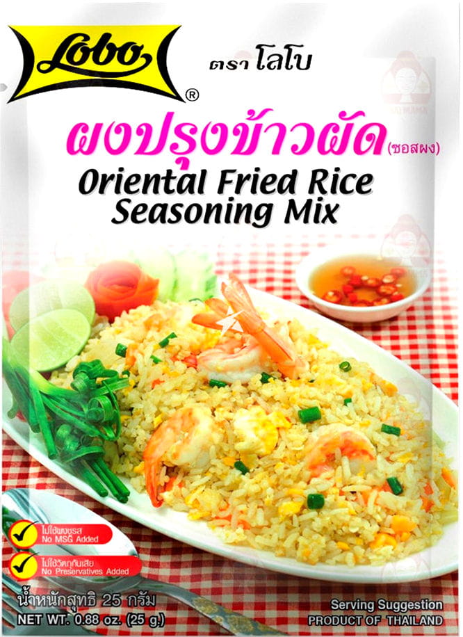 Przepis na orientalny smażony ryż: Przygotuj 100g krewetek lub wieprzowiny. Podgrzej 2 łyżki oleju i usmaż mięso lub krewetki. Dodaj odpowiednią dla dwóch osób porcję ugotowanego ryżu, podgrzewaj na wolnym ogniu ciągle mieszając. Dodaj zawartość saszetki, podgrzewaj dalej dokładnie mieszając. Całość potrawy przesuń na jedną stronę garnka, patelni czy też woka, a następnie wbij dwa jajka w puste miejsce i szybko je wymieszaj z ryżem. Na koniec dodaj świeżą zieloną cebulkę, ogórka oraz pomidory.