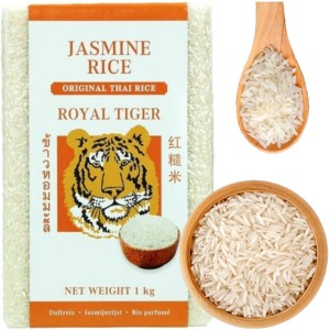 Opis: Ryż jaśminowy biały firmy Royal Tiger w opakowaniu 1kg, próżniowo zamknięty. Różni się od zwykłego ryżu kształtem oraz zapachem. Jest znacznie dłuższy i węższy od tradycyjnego białego ryżu. Podczas gotowania wydobywa się cudowny zapach jaśminu, który na pewno wprowadzi w kuchni orientalny klimat gotowania. W smaku bardzo dobry. Stosuje się go do wielu azjatyckich potraw.