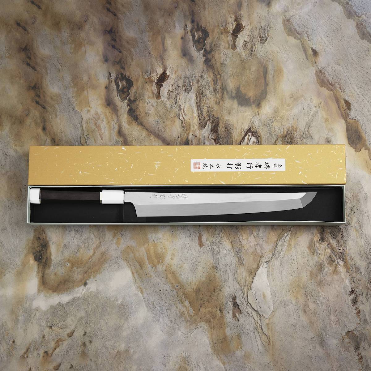Opis: Nóż do sashimi (Yanagi) to tradycyjny japoński nóż, który służy do krojenia świeżych filetów na niemal przezroczyste plastry. Znakomicie się sprawdza podczas przygotowywania sushi, rybnego carpaccio oraz innych potraw z bardzo delikatnych składników. Długie, wąskie i sztywne ostrze zapewnia drobiazgową precyzję, a jednostronny szlif – czyste cięcie. Nożem Yanagi najlepiej wykonywać jednostajny ruch w jednym kierunku: do siebie.