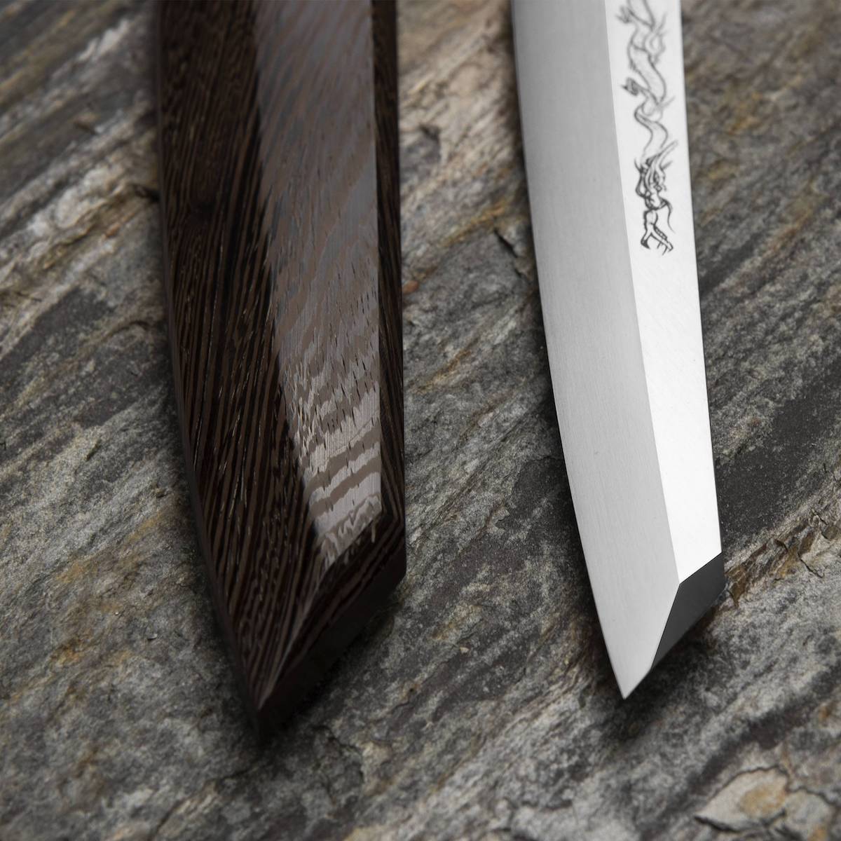 Opis: Nóż do sashimi (Yanagi) to tradycyjny japoński nóż, który służy do krojenia świeżych filetów na niemal przezroczyste plastry. Znakomicie się sprawdza podczas przygotowywania sushi, rybnego carpaccio oraz innych potraw z bardzo delikatnych składników. Długie, wąskie i sztywne ostrze zapewnia drobiazgową precyzję, a jednostronny szlif – czyste cięcie. Nożem Yanagi najlepiej wykonywać jednostajny ruch w jednym kierunku: do siebie.
