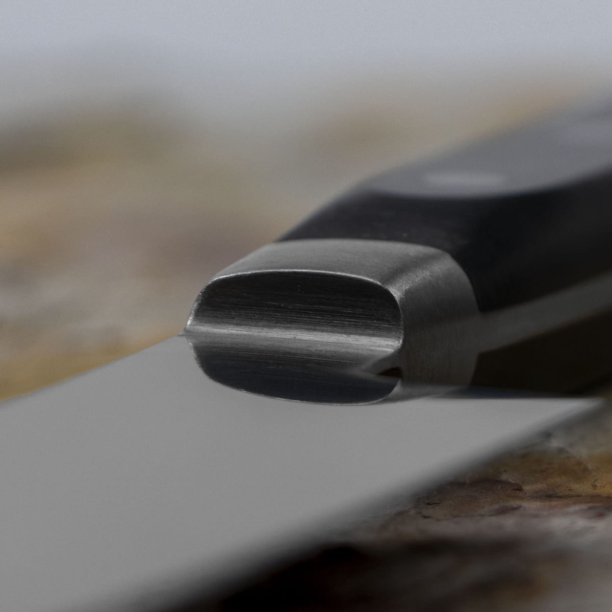 Opis: Najbardziej wszechstronny nóż kuchenny, przeznaczony do krojenia warzyw, owoców, mięsa i ryb. Ponieważ posiada ostry czubek, w razie potrzeby może także służyć do oddzielania mięsa od kości, porcjowania kurczaka czy filetowania mniejszych ryb. Ostrze o optymalnej długości pozwala kroić większe płaszczyzny i gwarantuje pełną kontrolę nad nożem. Dobrej jakości nóż szefa kuchni to niezbędne narzędzie w arsenale każdego kucharza.