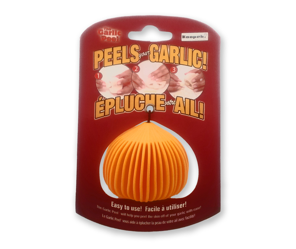 Silikonowe urządzenie, wyglądem przypominające czosnek, doskonałe do obierania tego zdrowego warzywa. 100% skuteczności przy obieraniu czosnku.