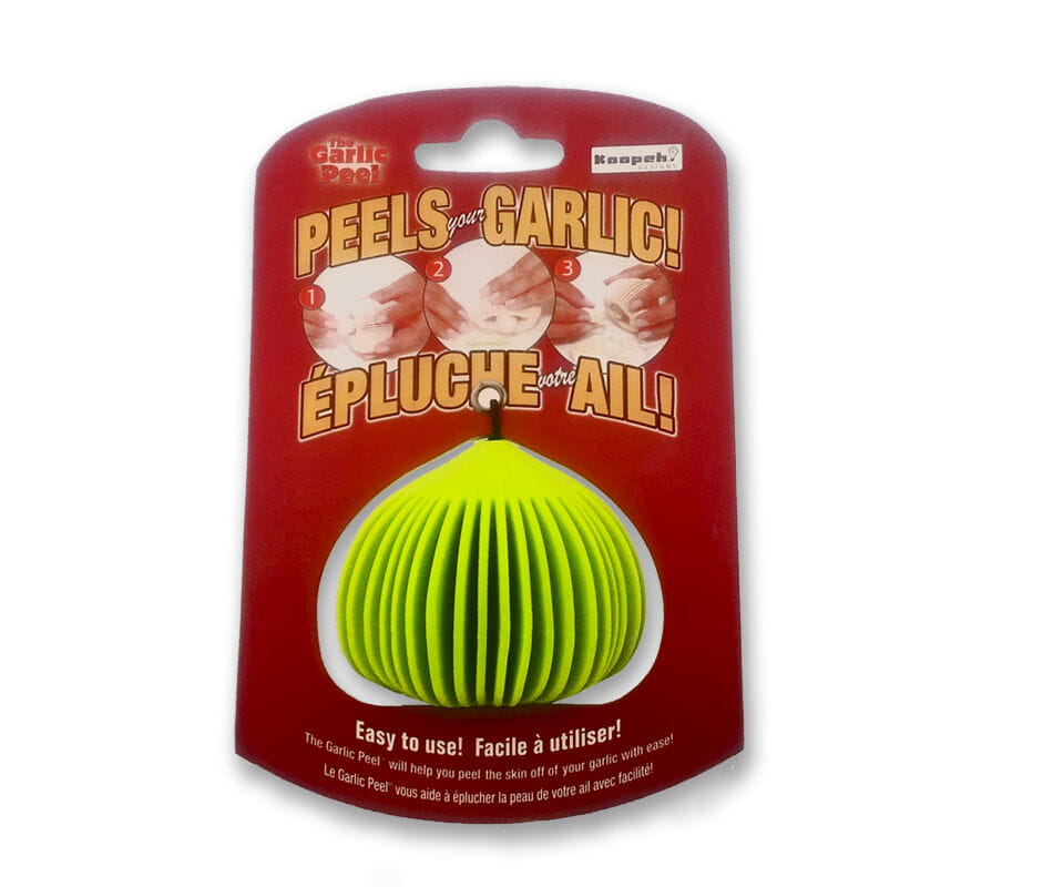 - Wyjmij obrany ząbek czosnku, a skórka pozostanie wewnątrz obieraka.