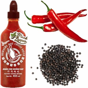 Opis: Sos chilli sriracha czarny pieprz firmy Flying Goose Brand w butelce z dozownikiem 455ml. Bardzo smaczna wersja sosu sriracha z dodatkiem czarnego pieprzu. Jest bardzo ostry, dlatego może zaspokoić gusta wielbicieli naprawdę ostrego smaku. Znany na całym świecie za swój doskonały intensywnie ostry smak. Dzięki doskonałemu połączeniu wszystkich składników zyskał uznanie na całym globie. Sos sriracha jest jednym z najbardziej rozpoznawanych sosów chili praktycznie w każdym kraju. Jest bardzo często wykorzystywany w kuchni azjatyckiej, a w szczególności w kuchni tajskiej. Tajowie używają go na co dzień, jak keczup, czy majonez.