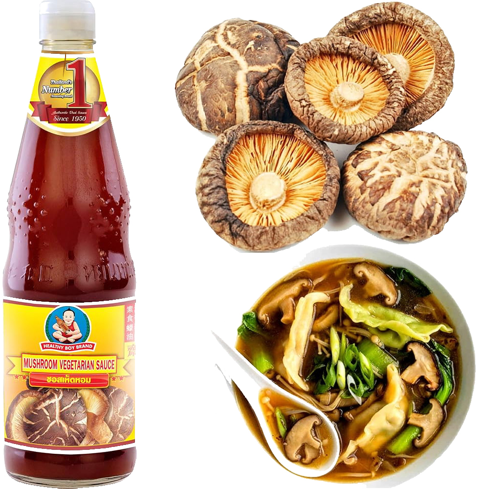 Opis: Sos sojowy grzybowy gęsty firmy Healthy Boy Brand w butelce 700ml. Orientalny sos służący do przygotowania azjatyckich potraw z aromatem grzybów. Idealny dodatek do dań stir-fry, makaronów i ryżu smażonego.