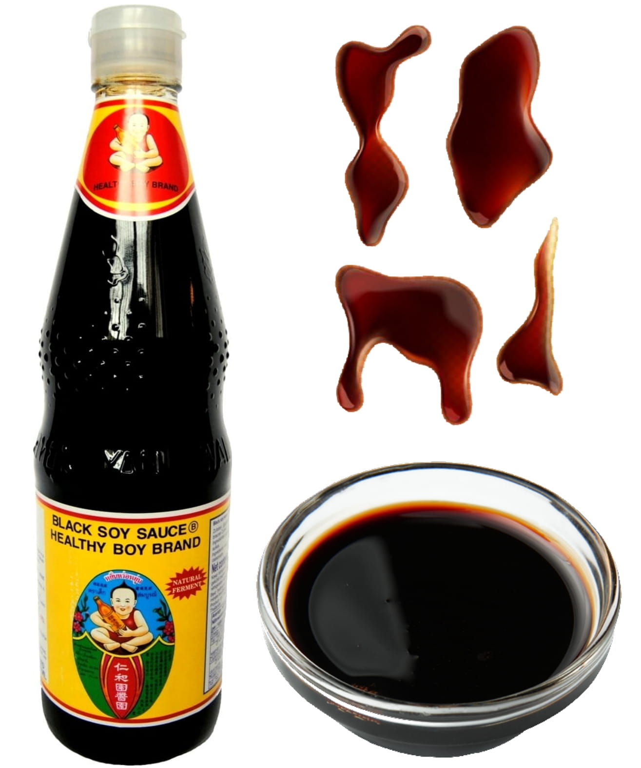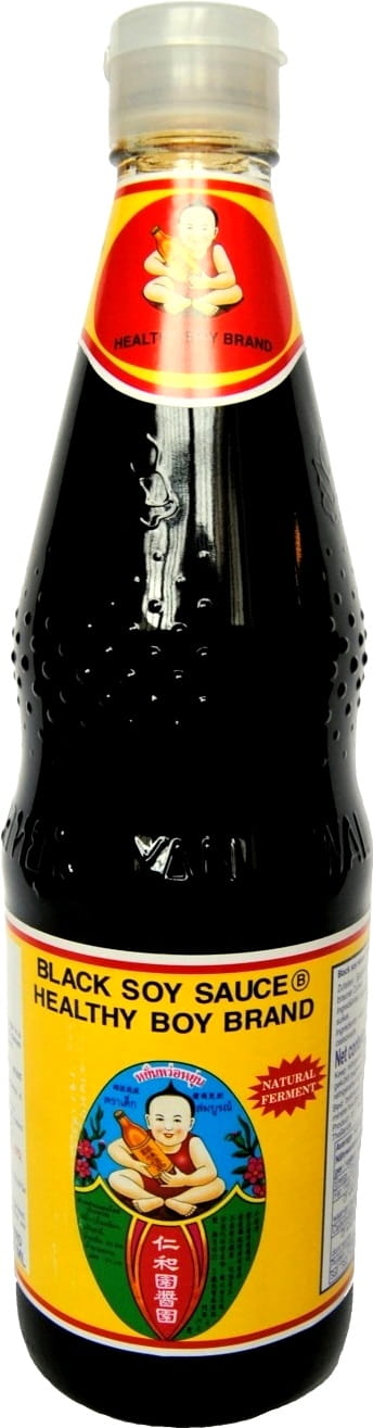 Opis: Sos sojowy ciemny firmy Healthy Boy Brand w butelce 700ml. Jak sama nazwa wskazuje jest to ciemniejsza wersja jasnego sosu sojowego. Bardziej aromatyczny, gęstszy, a także intensywniejszy w smaku. Sosy oraz dania przyprawiane ciemnym sosem sojowym stają się ciemniejsze, a marynowane mięso delikatne i smaczne. Przepisy kuchni tajskiej oraz kuchni chińskiej bardzo często bazują właśnie na ciemnej odmianie sosu sojowego. Sos jakości premium naturalnie warzony.